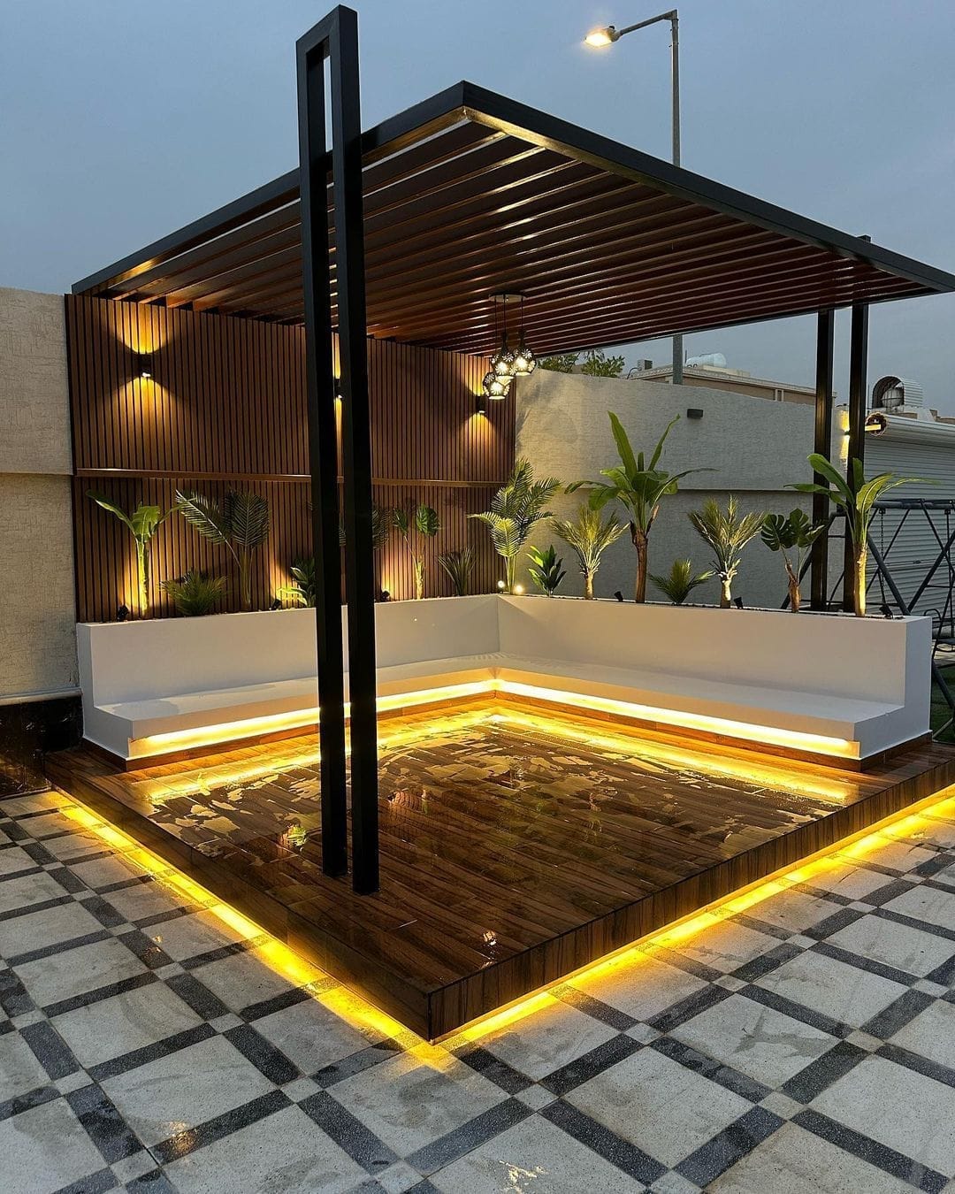 تتوفر بأشكال هندسية متنوعة، ويمكن تصنيعها من الخشب أو الألومنيوم أو الحديد مع إمكانية دمج الإضاءة لإضفاء أجواء جذابة ليلاً.